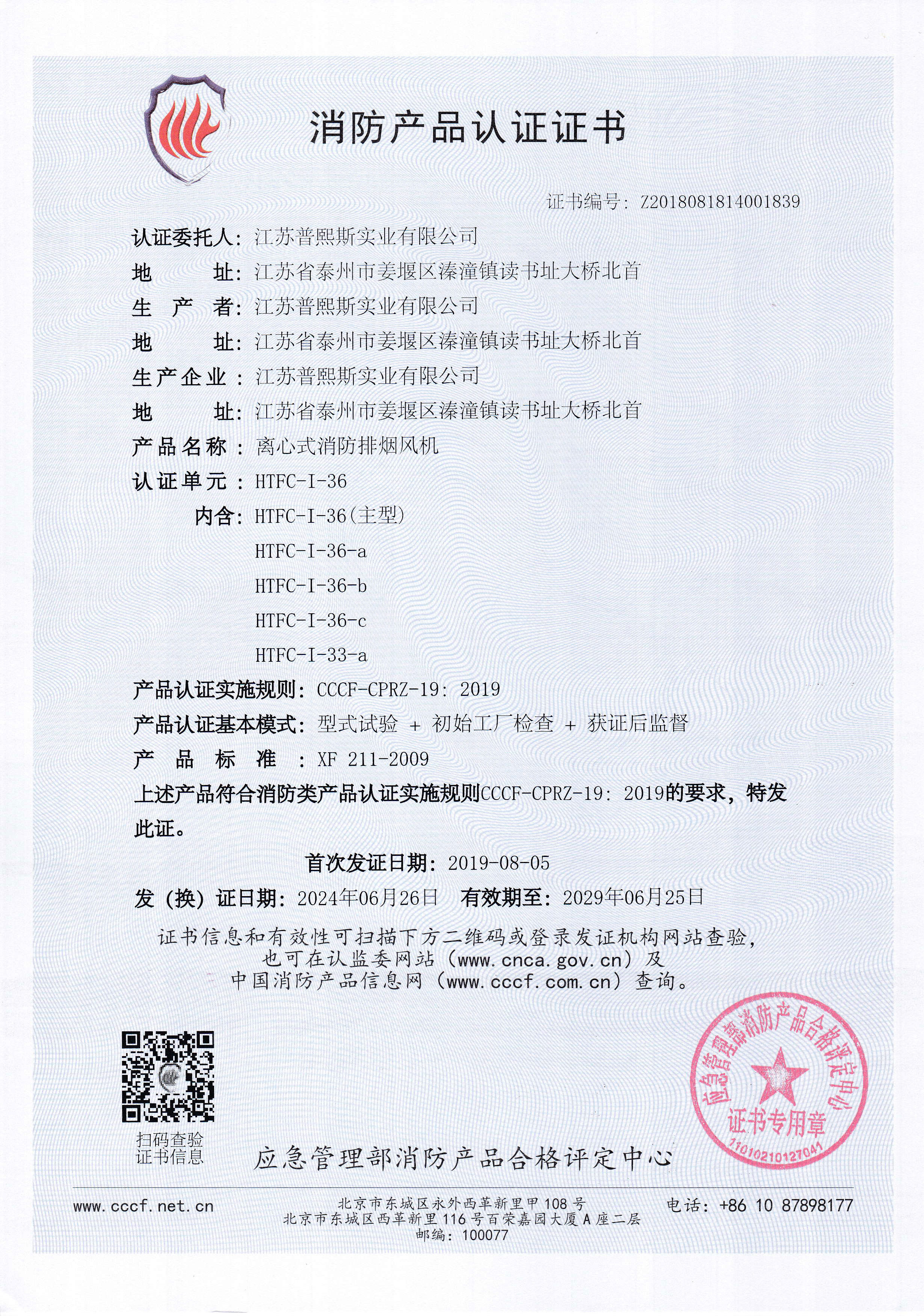 HTFC-I-36-3C证书